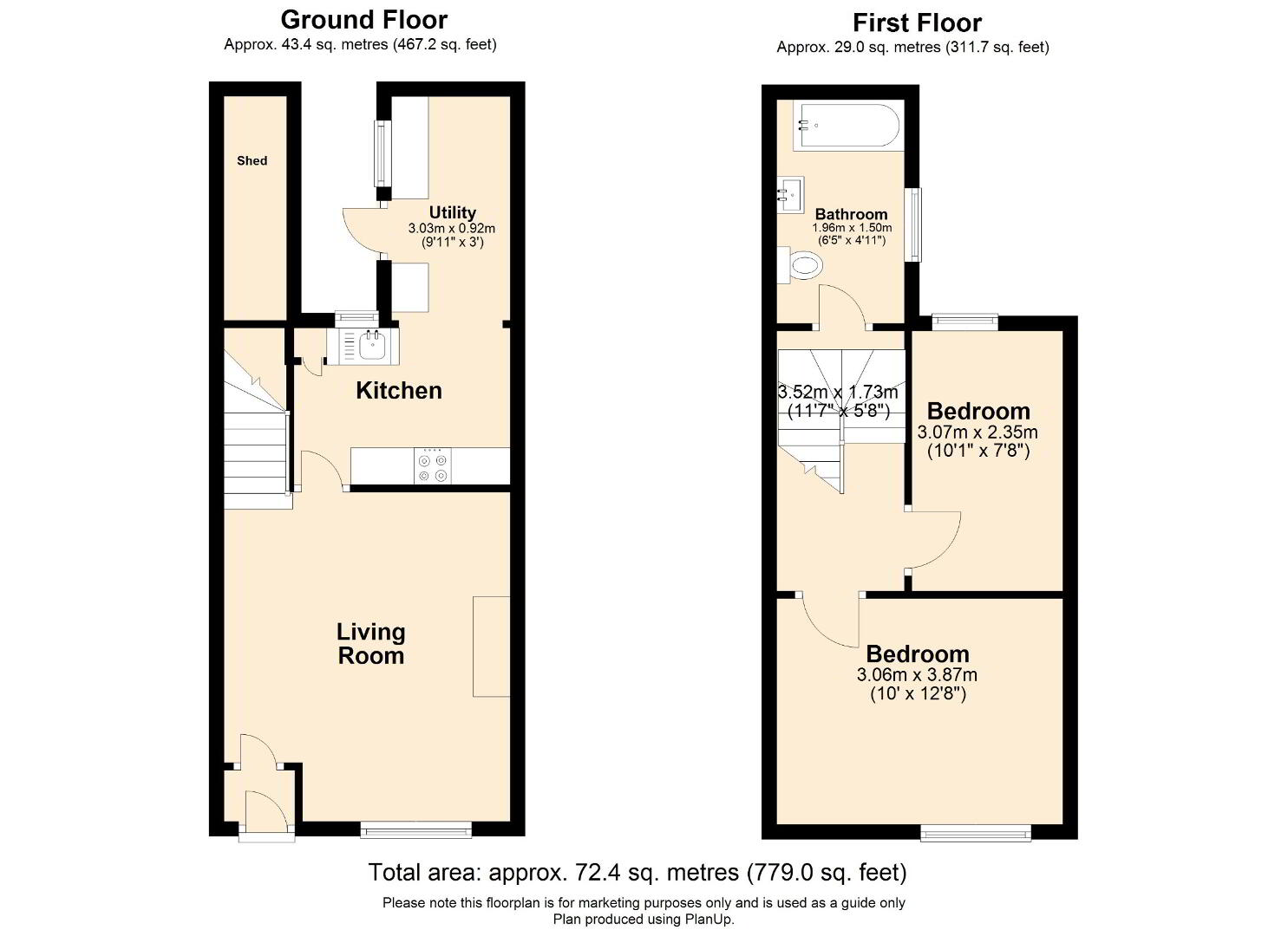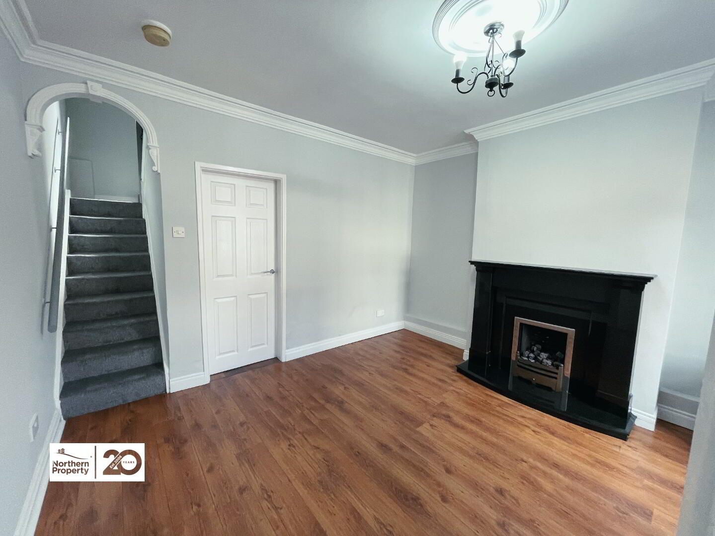 Upon entry, the property welcomes you into a well proportioned, bright reception room decorated to a modern finish and is complete with gas fire and marble fireplace surround. Leading off the living room is sleek fitted kitchen providing ample cupboard space at both high and low level accompanied by integrated oven. At First Floor level, the property further boasts two sizeable bedrooms complete with laminate flooring PVC double glazing and detailed panelling in the principle bedroom. To complete the first floor accommodation is a modern three piece tiled bathroom suite comprising bath with stand-over shower, toilet and wash-hand basin.